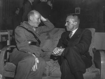 | Keywords: andre verdenskrig andreverdenskrig vårslipp 2015 vårslipp2015 2. verdenskrig 2verdenskrig frigjøring 00 ukjent 00ukjent ukjent land ukjentland blackandwhite monochrome black and white Original bildetekst: I tillegg til de rent militære grener er det opprettet en sivil administrasjon - Civil Affairs - som vil ta seg av de finansielle, juridiske, helsemessige og administrative problemer under frigjøringen av Norge. Organisasjonen ligger under Scottish Command's ledelse og innbefatter foruten norsk også engelske og amerikanske eksperter på alle områder. Bildet er tatt under en Civil Affairs mottakelse i 45 Park Lane 7 juli 1944 og viser dr. Karl Evang - Medisinaldirektoratet i samtale med oberstløytnant S.A. Sandford - Civil Affairs Officer, Refugees and Displaced persons Branch. Arkivreferanse: NTBs krigsarkiv i Riksarkivet (RA/PA-1209/U/Uj/L0214) Original bildetekst: I tillegg til de rent militære grener er det opprettet en sivil administrasjon - Civil Affairs - som vil ta seg av de finansielle, juridiske, helsemessige og administrative problemer under frigjøringen av Norge. Organisasjonen ligger under Scottish Command's ledelse og innbefatter foruten norsk også engelske og amerikanske eksperter på alle områder. Bildet er tatt under en Civil Affairs mottakelse i 45 Park Lane 7 juli 1944 og viser dr. Karl Evang - Medisinaldirektoratet i samtale med oberstløytnant S.A. Sandford - Civil Affairs Officer, Refugees and Displaced persons Branch. Arkivreferanse: NTBs krigsarkiv i Riksarkivet (RA/PA-1209/U/Uj/L0214) |