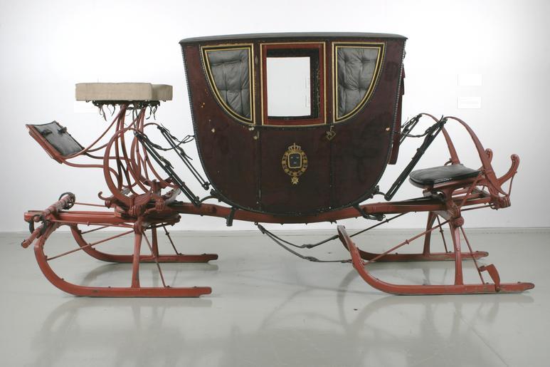 Keywords: Sjuglassläde, vänster sida - Livrustkammaren - 39589.tif Vagnskorgen en s k coach fast kur har U-formig kontur svagt välvt tak och är upphängd i C-fjädrar fram och S-fjädrar bak samt svarta remmar med mässingsspännen 3+3 sidofönster och ett framfönster två dörrar med blåmålade utfällbara trappor i två steg klädda med tigerhudsmönstrad matta Vagnskorgen utvändigt målad i vinrött kantlister i form av bladstav Fönsterlister i guld och svart Övre delen av bakväggen svartmålad vid takkanten är fyra korta läderstroppar med förgyllda mässingsspännen fästade Vid dessa är röda vävda stroppar med fransar fästade i två små och en stor båge nedhängande <br/><br/>Dörrfönstrens inre ram överklädd med röd sammet Rektangulära vridhantag av mässing På dörrarnas mitt målat lilla riksvapnet omgivet av serafimerkedja i guld svart och vitt Visavisäten och klädsel av smårutig gul grå silkessammet Madrasserade gardiner av grått siden Kantband med sicksackmönster tofsar och rosetter i rött svart vitt och gult Synliga trädelar blåmålade Dörrarnas nedre del klädda med blått skinn Sittdynorna förvaras separat Rödmålat underrede med ett medpar fram och ett bak En mittbom Kuskbock med fotstöd och fothällor monterade vid underredet Vridbar framaxel Rektangulär läderklädd lakejbräda med insvängda hörn Trädelarna profilerade och delvis utformade som voluter Röd tistelstång märkt 112456 med vit färg original caption sjuglassläde vänster sida early other date century 19 hide Färg blå material skinn - silk Färg grå material siden - velvet Färg röd material sammet - wood Färg blå vinröd svart material trä - steel size mm 1890 vid tak size mm 1240 fram och bak size mm 1460 size mm 740 mark till underrede size mm 4380 underrede size mm 2680 mellan hjulaxlarna LRK place of origin original filename lm_dig0591 41041 inventory number LRK 4500 39589 CC-BY-SA Samuel Uhrdin <gallery caption Different images of same object > File Sjuglassläde höger sida m öppen dörr - Livrustkammaren - 13904 tif File Sjuglassläde bakifrån - Livrustkammaren - 31029 tif File Sjuglassläde höger sida - Livrustkammaren - 5343 tif File Sjuglassläde framifrån - Livrustkammaren - 82389 tif File Sjuglassläde klädsel - Livrustkammaren - 22467 tif </gallery> Samuel Uhrdin Media contributed by LSH dim-with multiple size templates Media contributed by LSH unmatched objKeyword Media contributed by LSH without any categories Color images from Livrustkammaren Media contributed by LSH 2013-10