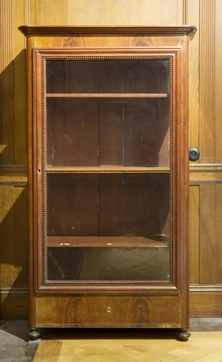 Keywords: Skåp - Hallwylska museet - 108943.tif LSH artwork sv SKÅP med två nycklar I mahogny med glas Stående rektangulärt med rundade framhörn dörr låda och fem hyllor samt på fyra fötter Fanerat blindträ av furu samt polerat invändigt målat Hyllor av furu varje med en pålagd stavlist längs framkantens översida samt målade i mahogny Höjd 170 5 cm bredd 97 5 cm djup 42 cm Nycklar original Av järn med liggande oval ögla upptill på pipan en profilering Dörrens nyckel längd 6 1 cm bredd 2 cm Lådans nyckel längd 5 7 cm bredd 2 3 cm Ursprungligen använd till förvaring av Wilhelmina Kempes snäcksamling Gåva till Wilhelmina Mina Kempe en julafton på 1850-talet från hennes föräldrar Wilhelm Henrich och Johanna Kempe original caption Skåp<br/> Nyckelord Skåp Kontor Kontorsmöbler mahogany HWY place of origin original filename hm_dig21745 7971 inventory number HWY IV XVII M 01 108943 CC-BY-SA Jenny Bergensten Cabinets Offices Household objects Jenny Bergensten Media contributed by LSH unmatched keyword Media contributed by LSH 2016-12