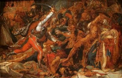 | Keywords: Sketch for 'The Revolt at Cairo' by Anne-Louis Girodet de Roucy-Trioson, c. 1809.JPG en Sketch for The Revolt at Cairo oil painting on paper mounted on canvas by Anne-Louis Girodet de Roucy-Trioson c 1809 Cleveland Museum of Art own Wmpearl ~ 1809 Cc-zero French paintings in the Cleveland Museum of Art Anne-Louis Girodet-Trioson Battles in art Campaign in Egypt 1798-1801 1800s paintings from France Egyptian Revolution of 1799 | ||||