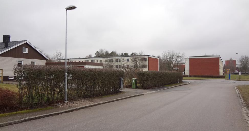 Keywords: Skiftinge Rosstorpsvägen.JPG sv Skiftinge Centrum norr om Eskilstuna Villor och hyreshus utmed Rosstorpsvägen längst bort till höger syns höghusen i Skiftinge centrum own Hangsna 2014-03-02 Eskilstuna Municipality Cc-zero