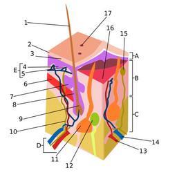 Keywords: Skin.svg ar الجلد البشري translated by Tarawneh http //training seer cancer gov/ss_module14_melanoma/images/illu_skin01 jpg as last archived 2008-06-12 09 37 35 at http //web archive org/web/20080612093735/http //training seer cancer gov/ss_module14_melanoma/images/illu_skin01 jpg as displayed by http //training seer cancer gov/ss_module14_melanoma/unit02_sec01_anatomy html Anatomy of the Skin as last archived 2008-06-12 09 37 35 at http //web archive org/web/20080612093735/http //training seer cancer gov/ss_module14_melanoma/unit02_sec01_anatomy html Anatomy of the Skin US-Gov 2005-2009http //web archive org/ /http //training seer cancer gov/ss_module14_melanoma/unit02_sec01_anatomy html File Skin-ar png Arabic language File Skin jpg English language PD-USGov ImageNote 1 379 317 16 12 396 407 2 Vein ImageNoteEnd 1 ImageNote 2 319 30 16 12 396 407 2 15 is actually the Dermal Papillary 16 is the Sweat Pore and 17 which should be the Sensory Nerve ending is not shown ImageNoteEnd 2 SVG files on integumentary system Histological schematic SVG anatomy