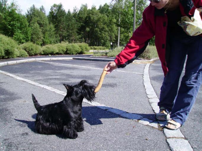 Keywords: Skotsk terrier - Nikki er glad i pølser.jpg 2009-04-30 own assumed Helene 1911 Scottish Terrier Black dogs