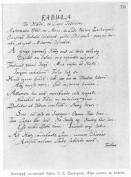 Keywords: Skovoroda Fabula.jpg ru Копия укописи Г иго ия Саввича Сково оды 2013-11-13 12 48 20 Рукописный фонд Киевской национальной библиотеки Г С Сково ода PD-Art Uploaded with UploadWizard Check categories 2015 May 21 Hryhoriy Skovoroda