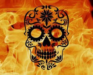 Keywords: skull and crossbones fire flame weird skull bone death surreal colorful flowers