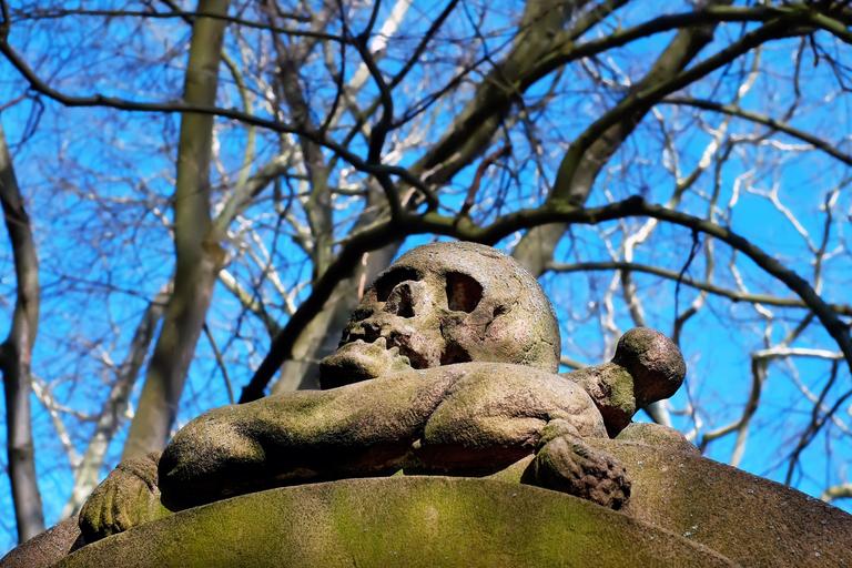 Keywords: skull and crossbones skull stone artwork weird cemetery