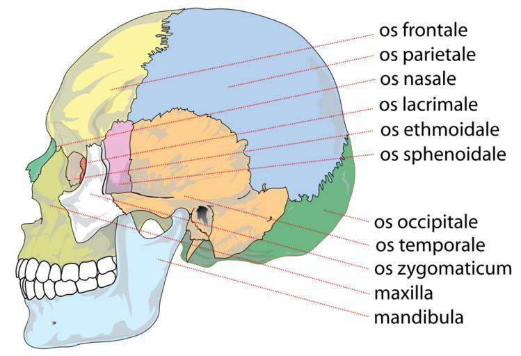 Keywords: skull human anatomy cranium teeth labeled label colour-coded