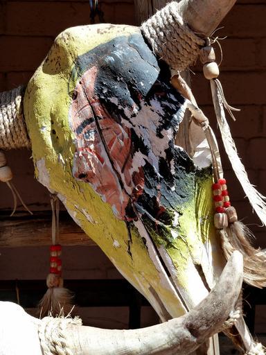 Keywords: skull painted animal bone cattle horns spooky horror