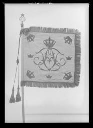 Keywords: Skvadronstandar Borgerskapets kavalleri - Livrustkammaren - 35654.tif Duk av dubbel röd sidendamast mycket blekt med mönster bestående av ett yvigt lövverk Mönsterrapport på damasten b 235 mm x h 420 mm Dekor broderat på utsidan Adolf Fredriks namnchiffer spegelmonogram A F under sluten kunglig krona nedtill omgiven av två lagerkvistar hopknutna med rosett alltihop i läggsömsbroderi i silver Namnchiffret i kronans höjd 470 mm av fyra rosor i applicerad blå taft med påsydda motiv i blått och silver Frans enkel av metall Duken fäst med tre rader tennlickor på band Stång av trä kannelerad vitmålad och förgylld järnbeslagen Löpande bärring Holk av förgylld mässing Avsågad original caption 1763 iron - silver - gold - metal - wood Färg vit material trä size mm 10 band size mm 350 grepp size mm 710 size mm 670 size mm 60 frans size mm 3150 stång total size mm 80 holk LRK place of origin original filename LN_B11224_014104 53620 inventory number LRK 17079 35654 CC0 Skvadronstandar Borgerskapets kavalleri - Livrustkammaren - 35654-negative tif <gallery caption Different images of same object > File Skvadronstandar Borgerskapets kavalleri - Livrustkammaren - 43207 tif File Skvadronstandar Borgerskapets kavalleri - Livrustkammaren - 68893 tif </gallery> Heraldic flags Media contributed by LSH unmatched material Media contributed by LSH dim-with multiple size templates Media contributed by LSH 2013-10 |