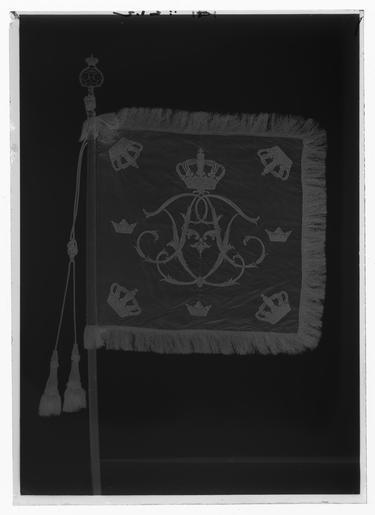 Keywords: Skvadronstandar Borgerskapets kavalleri - Livrustkammaren - 35654-negative.tif Duk av dubbel röd sidendamast mycket blekt med mönster bestående av ett yvigt lövverk Mönsterrapport på damasten b 235 mm x h 420 mm Dekor broderat på utsidan Adolf Fredriks namnchiffer spegelmonogram A F under sluten kunglig krona nedtill omgiven av två lagerkvistar hopknutna med rosett alltihop i läggsömsbroderi i silver Namnchiffret i kronans höjd 470 mm av fyra rosor i applicerad blå taft med påsydda motiv i blått och silver Frans enkel av metall Duken fäst med tre rader tennlickor på band Stång av trä kannelerad vitmålad och förgylld järnbeslagen Löpande bärring Holk av förgylld mässing Avsågad original caption 1763 iron - silver - gold - metal - wood Färg vit material trä size mm 10 band size mm 350 grepp size mm 710 size mm 670 size mm 60 frans size mm 3150 stång total size mm 80 holk LRK place of origin original filename LN_B11224_014104 53620 inventory number LRK 17079 35654 CC0 Skvadronstandar Borgerskapets kavalleri - Livrustkammaren - 35654 tif <gallery caption Different images of same object > File Skvadronstandar Borgerskapets kavalleri - Livrustkammaren - 43207 tif File Skvadronstandar Borgerskapets kavalleri - Livrustkammaren - 68893 tif </gallery> |