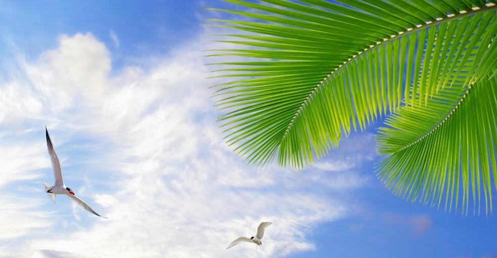 MAKE A MEME View Large Image sky blue sky clouds nature cloud coconut tree tree birds seagulls litoral day light beauty tropical birds ecology