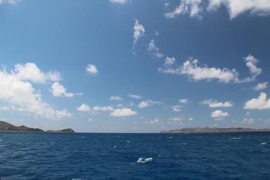 Keywords: sky clouds blue water sea ocean island empty bright open scene