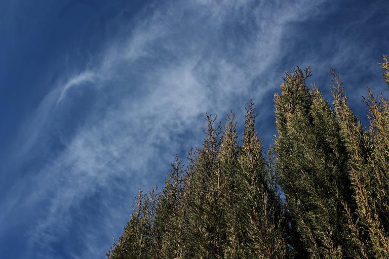 Keywords: sky clouds landscape field cypress nature blue look up calm serenity white clouds