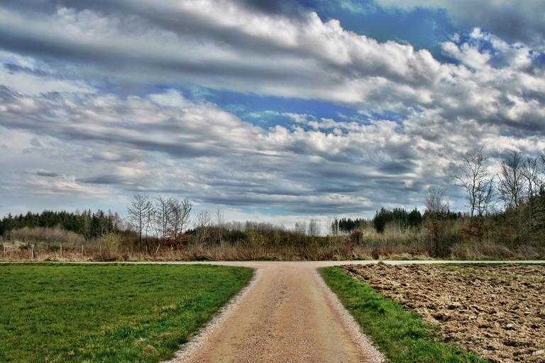 Keywords: sky clouds stormy crossroads field meadow landscape spring trees