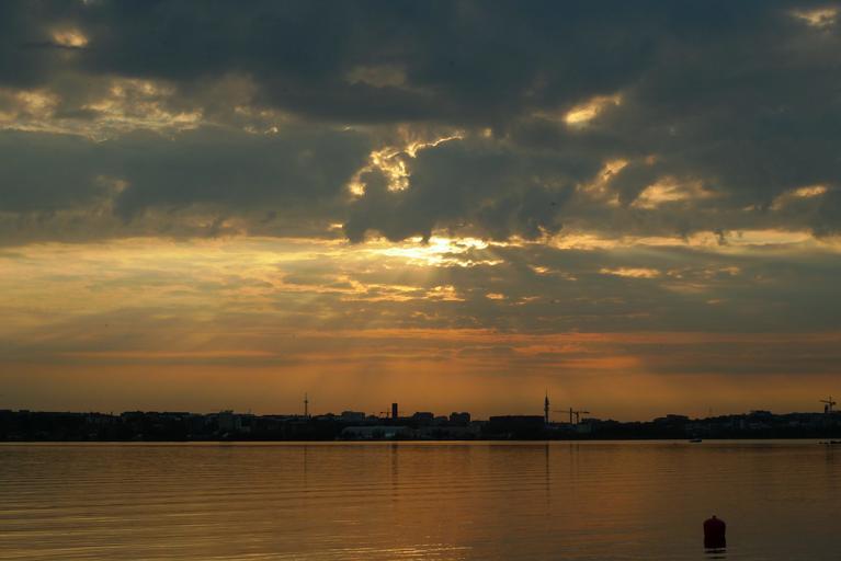 Keywords: sky clouds sunset weather cloudy autumn sea bay urban sunrays heaven sunbeam light twilight waterscape orange sun evening romantic water dusk dramatic