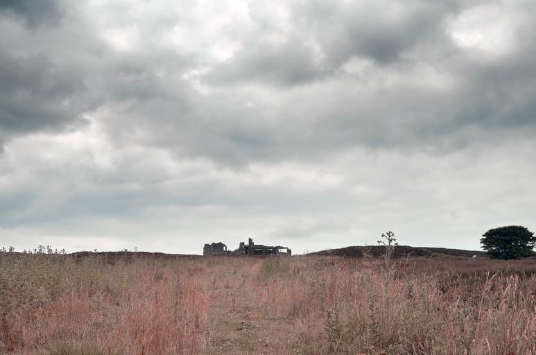 Keywords: sky landscape grass field view cloud rural building abandoned