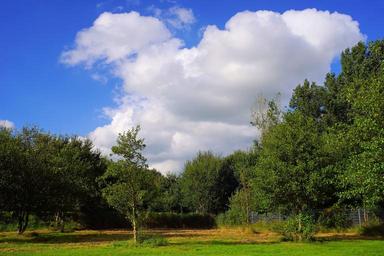 Keywords: sky trees nature meadow relaxation lawn blue clouds landscape late summer