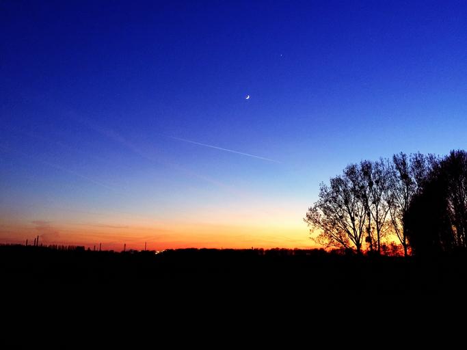 Keywords: skyline blue sky scene germany moon evening night mood colorful