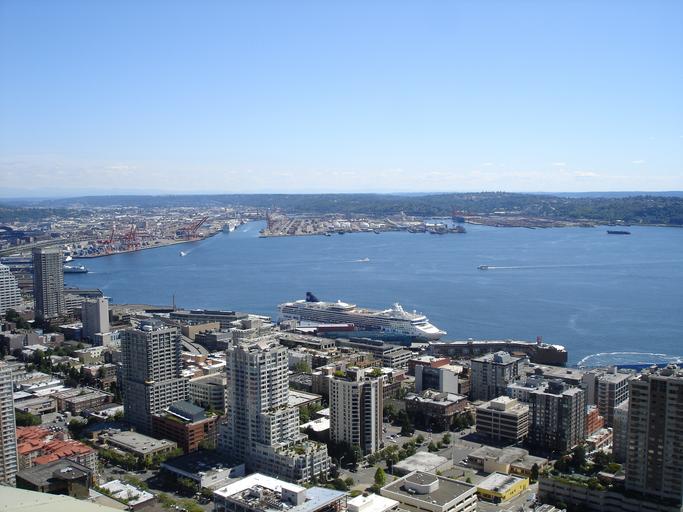 Keywords: skyline seattle space needle cityscape city buildings downtown downtown seattle puget sound
