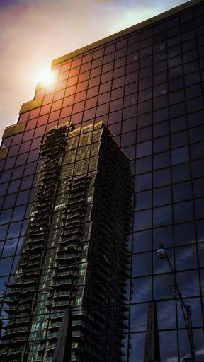 Keywords: skyscraper architecture reflexion toronto sunset downtown building glass