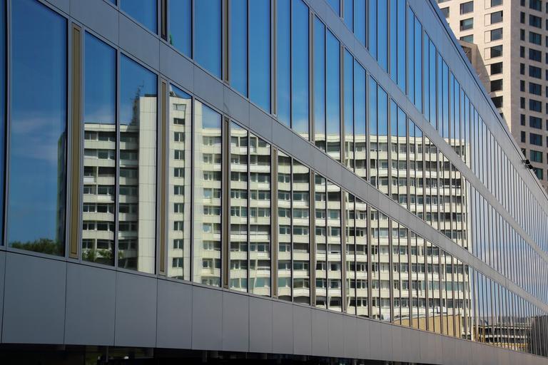 Keywords: skyscraper building architecture mirroring glass window office building modern perspective berlin