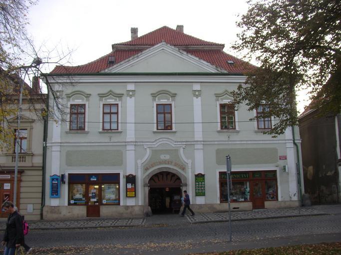 | Keywords: Slany KL CZ Pansky dum cp 1 Masarykovo nam 182.jpg Tzv Panský dům čp 1 ve Slaném nároží Masarykova náměstí a ul Masnokrámské Čelní pohled od SSV z náměstí V období pobělohorském kdy bylo královské město Slaný za trest uvrženo do poddanství na Smečně sídlícícm hrabatům z Martinic zde sídlila správa slánského panství a příležitostně nocovala smečenská vrchnost při pobytech ve Slaném House No 1 a palace of Counts of Martinice Masarykovo Sq in Slaný Kladno District Central Bohemian Region Czech Republic Front view from NNE 29047/2-566 Cultural monuments in Slaný Masarykovo náměstí Slaný Buildings in Slaný |