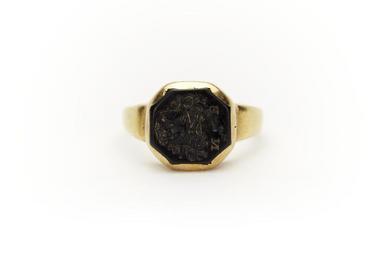 | Keywords: Slät ring av guld med åttsidig, svart sten - Skoklosters slott - 92274.tif LSH artwork sv Skuret signet i form av vapensköld med rovfågel matande sina ungar på redet Hjälmprydnaden duva med olivkvist Initialerna N B <br/>1600-talets slut original caption Slät ring av guld med åttsidig svart sten <br/> Nyckelord 1600-tal Ring Ringar Smycke Smycken Sigillstamp Signetringar Guld Sten Föremålsbild Stämpel - 1675 1700 size mm 19 14 SKO Magnus Brahe greve riksmarskalk N B place of origin original filename sm_dig8620 21452 inventory number SKO 291 92274 CC-BY-SA Erik Lernestål Stone Stamping Gold Signet rings Erik Lernestål Media contributed by LSH 2014-11 |