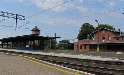 Keywords: SŁAWNO. AB-009.JPG pl WIDOK NA DWORZEC KOLEJOWY Z PERONÓW 2013-06-06 14 29 15 own Antekbojar cc-zero Uploaded with UploadWizard Sławno train station