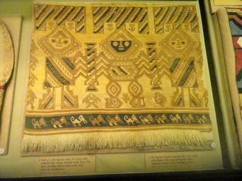 Keywords: Slit tapestry tunic (half), cotton with camelid fiber, central coast, Peru - Peruvian fabric in the American Museum of Natural History - DSC06140.JPG Exhibit in the South American collection of the American Museum of Natural History Manhattan New York City New York USA Photography was permitted in the museum without restriction Daderot 2012-04-02 12 01 17 Daderot cc0 cc0 Peruvian fabric in the American Museum of Natural History |