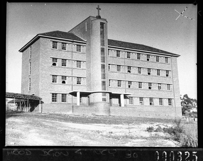 View Original:SLNSW 12083 Exterior of the front facade showing circular staircase Newcastle Mater Misericordiae Hospital Waratah School of Nursing Home for Building Publishing Co.jpg (1400x1112)