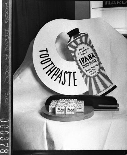 | Keywords: SLNSW 12096 Ipana toothpaste display taken for Metropolitan Art Studios.jpg en Ipana toothpaste display taken for Metropolitan Art Studios 1/1939 http //www acmssearch sl nsw gov au/search/itemDetailPaged cgi itemID 12096 item <br/>http //www acmssearch sl nsw gov au/search/itemDetailPaged cgi itemID 37473 album <br/>http //www acmssearch sl nsw gov au/search/itemDetailPaged cgi itemID 395018 collection Creator Sam Hood This image may be used freely without requesting permission The State Library of New South Wales http //www acmssearch sl nsw gov au/search/itemPopLarger cgi itemID 12096 requests acknowledgement that the image is from the collections of the State Library of NSW User 99of9/SLNSW_extra_metadata_template 12096 Ipana toothpaste display taken for Metropolitan Art Studios Home and Away - 9701 1/1939 Photographs 32812 images copied from glass and cellulose nitrate photonegatives The Library first purchased a large collection of negatives from Gladys Hood in 1972 This collection which included nitrate negatives which have subsequently been copied at DG 0N4 NCY 28-61 was transferred to a videodisc in 1991 and each image indexed individually Ted Hood assisted with the indexing; images were also identified using surviving studio registers The videodisc known as the Home Away disc or simply the Hood collection was digitised in 1996 and mounted on the Internet with upgraded index records via the online catalogue in December 1998 Purchased from Gladys Hood 1972 Copyright restrictions may apply - Photographs in this collection created before 1955 are all out of copyright Photographs created after 1955 are in copyright for the life of creator plus 70 years ; Please acknowledge - Mitchell Library State Library of New South Wales and Courtesy copyright holder 395018 Sam Hood photographic collection 1916-ca 1955 Approximately 44 800 negatives ; 7 309 photographic prints ; 3 boxes of textual material ; 6 film reels The Library first purchased a large collection of negatives from Gladys Hood in 1972 This collection which included nitrate negatives which have subsequently been copied at DG 0N4 NCY 28-61 was transferred to a videodisc in 1991 and each image indexed individually Ted Hood assisted with the indexing; images were also identified using surviving studio registers The videodisc known as the Home Away disc or simply the Hood collection was digitised in 1996 and mounted on the Internet with upgraded index records via the online catalogue in December 1998 ; Another collection from Sam Hood's studio was purchased in 1993 from Gladys Hood's descendants This comprised 7300 photoprints PXE 789 and ca 12000 negatives ON 204 Digitisation of important photographs in PXE 789 began Mar 2002 but ON 204 has not been digitised and must be viewed at the Library Samuel J Hood's 1872-1953 claimed to have been born 1870 but the South Australian Birth Index gives date as 20 August 1872 His career as a photographer began in the 1880s ; He ran a successful business in ships portraits these negatives are now held by the Australian National Maritime Museum Sydney and portraits of people in the late nineteenth - early twentieth century The State Library has little representation of this period In 1918 he acquired the Dalny Studio at 124 Pitt Street and began to expand his business into press photography providing photographs for the Sydney Mail the Australasian the Daily Guardian the Daily Telegraph Pictorial the Labor Daily the Sun the Daily News and the Sydney Morning Herald Press photography increasingly came to dominate his business and in 1934 he joined the Labor Daily for a short time as a full-time photographer engaging other staff to look after his studio ; By the mid-1930s most newspapers employed their own photographers and Hood's commissions from the papers began to decline Hood sought other kinds of commissions and won a number of long term advertising and commercial contracts He contributed a number of photographs of Sydney buildings and streets to Building Construction and Australasian Engineer during the late 1930s and early 1940s Hood also had extensive contacts in the entertainment industry who called upon him to document celebrity events and stars as well as theatre advertising Throughout his career he worked at the stock-in-trade for commercial photographers portraits weddings and even funerals ; A number of photographers worked for Dalny Studio some of these include Ernie Bowen Gus Daley Jack Lazern Lethington Maitland as well as Sam's own children Gladys and Ted ; For detailed biographical information about photographer Sam Hood see Sydney exposures through the eyes of Sam Hood his Studio 1925-1950 / Alan Davies Sydney State Library of New South Wales 1991 Out of copyright - Created before 1955 Photographs ; Please acknowledge - Mitchell Library State Library of New South Wales advertising photography; commercial photography; photojournalism 395018 Original item no NCY30/378 yes no PD-Australia PD-1996 Australia Images from the State Library of NSW album 37473 SLNSW media uploaded by User 99of9 Photographs by Sam Hood Advertising in Australia Toothpaste |