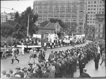 Keywords: SLNSW 19737 University Commemoration Day Commem through streets.jpg en University Commemoration Day Commem through streets 19/5/1937 http //www acmssearch sl nsw gov au/search/itemDetailPaged cgi itemID 19737 item <br/>http //www acmssearch sl nsw gov au/search/itemDetailPaged cgi itemID 37473 album <br/>http //www acmssearch sl nsw gov au/search/itemDetailPaged cgi itemID 395018 collection Creator Sam Hood This image may be used freely without requesting permission The State Library of New South Wales http //www acmssearch sl nsw gov au/search/itemPopLarger cgi itemID 19737 requests acknowledgement that the image is from the collections of the State Library of NSW Photographs 32812 images copied from glass and cellulose nitrate photonegatives The Library first purchased a large collection of negatives from Gladys Hood in 1972 This collection which included nitrate negatives which have subsequently been copied at DG 0N4 NCY 28-61 was transferred to a videodisc in 1991 and each image indexed individually Ted Hood assisted with the indexing; images were also identified using surviving studio registers The videodisc known as the Home Away disc or simply the Hood collection was digitised in 1996 and mounted on the Internet with upgraded index records via the online catalogue in December 1998 Purchased from Gladys Hood 1972 Copyright restrictions may apply - Photographs in this collection created before 1955 are all out of copyright Photographs created after 1955 are in copyright for the life of creator plus 70 years ; Please acknowledge - Mitchell Library State Library of New South Wales and Courtesy copyright holder 395018 Sam Hood photographic collection 1916-ca 1955 Approximately 44 800 negatives ; 7 309 photographic prints ; 3 boxes of textual material ; 6 film reels The Library first purchased a large collection of negatives from Gladys Hood in 1972 This collection which included nitrate negatives which have subsequently been copied at DG 0N4 NCY 28-61 was transferred to a videodisc in 1991 and each image indexed individually Ted Hood assisted with the indexing; images were also identified using surviving studio registers The videodisc known as the Home Away disc or simply the Hood collection was digitised in 1996 and mounted on the Internet with upgraded index records via the online catalogue in December 1998 ; Another collection from Sam Hood's studio was purchased in 1993 from Gladys Hood's descendants This comprised 7300 photoprints PXE 789 and ca 12000 negatives ON 204 Digitisation of important photographs in PXE 789 began Mar 2002 but ON 204 has not been digitised and must be viewed at the Library Samuel J Hood's 1872-1953 claimed to have been born 1870 but the South Australian Birth Index gives date as 20 August 1872 His career as a photographer began in the 1880s ; He ran a successful business in ships portraits these negatives are now held by the Australian National Maritime Museum Sydney and portraits of people in the late nineteenth - early twentieth century The State Library has little representation of this period In 1918 he acquired the Dalny Studio at 124 Pitt Street and began to expand his business into press photography providing photographs for the Sydney Mail the Australasian the Daily Guardian the Daily Telegraph Pictorial the Labor Daily the Sun the Daily News and the Sydney Morning Herald Press photography increasingly came to dominate his business and in 1934 he joined the Labor Daily for a short time as a full-time photographer engaging other staff to look after his studio ; By the mid-1930s most newspapers employed their own photographers and Hood's commissions from the papers began to decline Hood sought other kinds of commissions and won a number of long term advertising and commercial contracts He contributed a number of photographs of Sydney buildings and streets to Building Construction and Australasian Engineer during the late 1930s and early 1940s Hood also had extensive contacts in the entertainment industry who called upon him to document celebrity events and stars as well as theatre advertising Throughout his career he worked at the stock-in-trade for commercial photographers portraits weddings and even funerals ; A number of photographers worked for Dalny Studio some of these include Ernie Bowen Gus Daley Jack Lazern Lethington Maitland as well as Sam's own children Gladys and Ted ; For detailed biographical information about photographer Sam Hood see Sydney exposures through the eyes of Sam Hood his Studio 1925-1950 / Alan Davies Sydney State Library of New South Wales 1991 Out of copyright - Created before 1955 Photographs ; Please acknowledge - Mitchell Library State Library of New South Wales advertising photography; commercial photography; photojournalism 395018 Original item no NCY37/369 yes no PD-Australia PD-1996 Australia Images from the State Library of NSW album 37473 SLNSW media uploaded by User 99of9 Photographs by Sam Hood