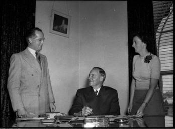 Keywords: SLNSW 31281 New Lord Mayor Purdue with his secretary Miss Z Burke and the Town Clerk Mr W Burges.jpg en New Lord Mayor Purdue with his secretary Miss Z Burke and the Town Clerk Mr W Burges 11/12/1952 http //www acmssearch sl nsw gov au/search/itemDetailPaged cgi itemID 31281 item <br/>http //www acmssearch sl nsw gov au/search/itemDetailPaged cgi itemID 37473 album <br/>http //www acmssearch sl nsw gov au/search/itemDetailPaged cgi itemID 395018 collection Creator Sam Hood This image may be used freely without requesting permission The State Library of New South Wales http //www acmssearch sl nsw gov au/search/itemPopLarger cgi itemID 31281 requests acknowledgement that the image is from the collections of the State Library of NSW Photographs 32812 images copied from glass and cellulose nitrate photonegatives The Library first purchased a large collection of negatives from Gladys Hood in 1972 This collection which included nitrate negatives which have subsequently been copied at DG 0N4 NCY 28-61 was transferred to a videodisc in 1991 and each image indexed individually Ted Hood assisted with the indexing; images were also identified using surviving studio registers The videodisc known as the Home Away disc or simply the Hood collection was digitised in 1996 and mounted on the Internet with upgraded index records via the online catalogue in December 1998 Purchased from Gladys Hood 1972 Copyright restrictions may apply - Photographs in this collection created before 1955 are all out of copyright Photographs created after 1955 are in copyright for the life of creator plus 70 years ; Please acknowledge - Mitchell Library State Library of New South Wales and Courtesy copyright holder 395018 Sam Hood photographic collection 1916-ca 1955 Approximately 44 800 negatives ; 7 309 photographic prints ; 3 boxes of textual material ; 6 film reels The Library first purchased a large collection of negatives from Gladys Hood in 1972 This collection which included nitrate negatives which have subsequently been copied at DG 0N4 NCY 28-61 was transferred to a videodisc in 1991 and each image indexed individually Ted Hood assisted with the indexing; images were also identified using surviving studio registers The videodisc known as the Home Away disc or simply the Hood collection was digitised in 1996 and mounted on the Internet with upgraded index records via the online catalogue in December 1998 ; Another collection from Sam Hood's studio was purchased in 1993 from Gladys Hood's descendants This comprised 7300 photoprints PXE 789 and ca 12000 negatives ON 204 Digitisation of important photographs in PXE 789 began Mar 2002 but ON 204 has not been digitised and must be viewed at the Library Samuel J Hood's 1872-1953 claimed to have been born 1870 but the South Australian Birth Index gives date as 20 August 1872 His career as a photographer began in the 1880s ; He ran a successful business in ships portraits these negatives are now held by the Australian National Maritime Museum Sydney and portraits of people in the late nineteenth - early twentieth century The State Library has little representation of this period In 1918 he acquired the Dalny Studio at 124 Pitt Street and began to expand his business into press photography providing photographs for the Sydney Mail the Australasian the Daily Guardian the Daily Telegraph Pictorial the Labor Daily the Sun the Daily News and the Sydney Morning Herald Press photography increasingly came to dominate his business and in 1934 he joined the Labor Daily for a short time as a full-time photographer engaging other staff to look after his studio ; By the mid-1930s most newspapers employed their own photographers and Hood's commissions from the papers began to decline Hood sought other kinds of commissions and won a number of long term advertising and commercial contracts He contributed a number of photographs of Sydney buildings and streets to Building Construction and Australasian Engineer during the late 1930s and early 1940s Hood also had extensive contacts in the entertainment industry who called upon him to document celebrity events and stars as well as theatre advertising Throughout his career he worked at the stock-in-trade for commercial photographers portraits weddings and even funerals ; A number of photographers worked for Dalny Studio some of these include Ernie Bowen Gus Daley Jack Lazern Lethington Maitland as well as Sam's own children Gladys and Ted ; For detailed biographical information about photographer Sam Hood see Sydney exposures through the eyes of Sam Hood his Studio 1925-1950 / Alan Davies Sydney State Library of New South Wales 1991 Out of copyright - Created before 1955 Photographs ; Please acknowledge - Mitchell Library State Library of New South Wales advertising photography; commercial photography; photojournalism 395018 Original item no NCY53/300 yes no PD-Australia PD-1996 Australia Images from the State Library of NSW album 37473 SLNSW media uploaded by User 99of9 Photographs by Sam Hood |