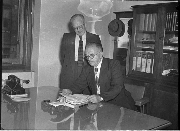 Keywords: SLNSW 37876 New postmaster at Newcastle Mr EJ Bradbury seated taking over from Mr TH Lott.jpg en New postmaster at Newcastle Mr EJ Bradbury seated taking over from Mr TH Lott 22/2/1957 http //www acmssearch sl nsw gov au/search/itemDetailPaged cgi itemID 37876 item <br/>http //www acmssearch sl nsw gov au/search/itemDetailPaged cgi itemID 37473 album <br/>http //www acmssearch sl nsw gov au/search/itemDetailPaged cgi itemID 395018 collection Creator Sam Hood This image may be used freely without requesting permission The State Library of New South Wales http //www acmssearch sl nsw gov au/search/itemPopLarger cgi itemID 37876 requests acknowledgement that the image is from the collections of the State Library of NSW Photographs 32812 images copied from glass and cellulose nitrate photonegatives The Library first purchased a large collection of negatives from Gladys Hood in 1972 This collection which included nitrate negatives which have subsequently been copied at DG 0N4 NCY 28-61 was transferred to a videodisc in 1991 and each image indexed individually Ted Hood assisted with the indexing; images were also identified using surviving studio registers The videodisc known as the Home Away disc or simply the Hood collection was digitised in 1996 and mounted on the Internet with upgraded index records via the online catalogue in December 1998 Purchased from Gladys Hood 1972 Copyright restrictions may apply - Photographs in this collection created before 1955 are all out of copyright Photographs created after 1955 are in copyright for the life of creator plus 70 years ; Please acknowledge - Mitchell Library State Library of New South Wales and Courtesy copyright holder 395018 Sam Hood photographic collection 1916-ca 1955 Approximately 44 800 negatives ; 7 309 photographic prints ; 3 boxes of textual material ; 6 film reels The Library first purchased a large collection of negatives from Gladys Hood in 1972 This collection which included nitrate negatives which have subsequently been copied at DG 0N4 NCY 28-61 was transferred to a videodisc in 1991 and each image indexed individually Ted Hood assisted with the indexing; images were also identified using surviving studio registers The videodisc known as the Home Away disc or simply the Hood collection was digitised in 1996 and mounted on the Internet with upgraded index records via the online catalogue in December 1998 ; Another collection from Sam Hood's studio was purchased in 1993 from Gladys Hood's descendants This comprised 7300 photoprints PXE 789 and ca 12000 negatives ON 204 Digitisation of important photographs in PXE 789 began Mar 2002 but ON 204 has not been digitised and must be viewed at the Library Samuel J Hood's 1872-1953 claimed to have been born 1870 but the South Australian Birth Index gives date as 20 August 1872 His career as a photographer began in the 1880s ; He ran a successful business in ships portraits these negatives are now held by the Australian National Maritime Museum Sydney and portraits of people in the late nineteenth - early twentieth century The State Library has little representation of this period In 1918 he acquired the Dalny Studio at 124 Pitt Street and began to expand his business into press photography providing photographs for the Sydney Mail the Australasian the Daily Guardian the Daily Telegraph Pictorial the Labor Daily the Sun the Daily News and the Sydney Morning Herald Press photography increasingly came to dominate his business and in 1934 he joined the Labor Daily for a short time as a full-time photographer engaging other staff to look after his studio ; By the mid-1930s most newspapers employed their own photographers and Hood's commissions from the papers began to decline Hood sought other kinds of commissions and won a number of long term advertising and commercial contracts He contributed a number of photographs of Sydney buildings and streets to Building Construction and Australasian Engineer during the late 1930s and early 1940s Hood also had extensive contacts in the entertainment industry who called upon him to document celebrity events and stars as well as theatre advertising Throughout his career he worked at the stock-in-trade for commercial photographers portraits weddings and even funerals ; A number of photographers worked for Dalny Studio some of these include Ernie Bowen Gus Daley Jack Lazern Lethington Maitland as well as Sam's own children Gladys and Ted ; For detailed biographical information about photographer Sam Hood see Sydney exposures through the eyes of Sam Hood his Studio 1925-1950 / Alan Davies Sydney State Library of New South Wales 1991 Out of copyright - Created before 1955 Photographs ; Please acknowledge - Mitchell Library State Library of New South Wales advertising photography; commercial photography; photojournalism 395018 Original item no NCY56/397 yes no PD-Australia PD-1996 Australia Images from the State Library of NSW album 37473 SLNSW media uploaded by User 99of9 Photographs by Sam Hood