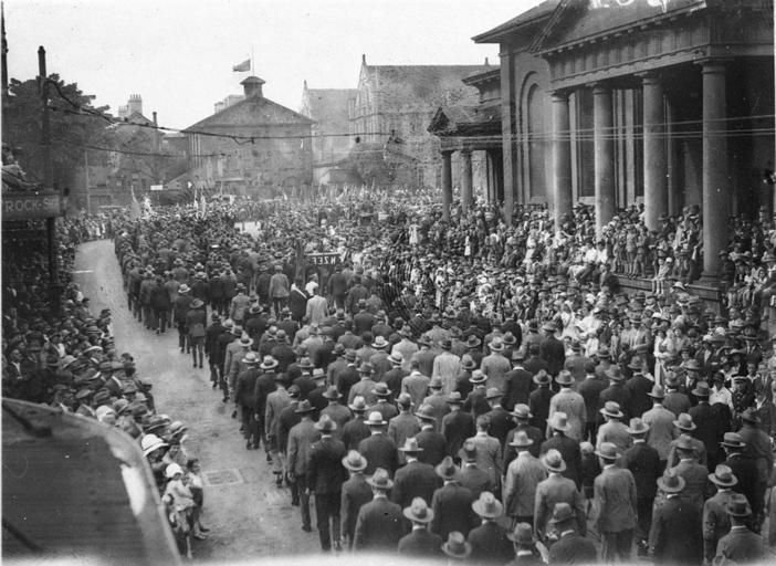 | Keywords: blackandwhite monochrome crowd people outdoor black and white Format: Photograph Notes: Find more detailed information about this photograph: acmssearch.sl.nsw.gov.au/search/itemDetailPaged.cgi?itemI... Search for more great images in the State Library's collections: www.acmssearch.sl.nsw.gov.au/ From the collection of the State Library of New South Wales: www.sl.nsw.gov.au Format: Photograph Notes: Find more detailed information about this photograph: acmssearch.sl.nsw.gov.au/search/itemDetailPaged.cgi?itemI... Search for more great images in the State Library's collections: www.acmssearch.sl.nsw.gov.au/ From the collection of the State Library of New South Wales: www.sl.nsw.gov.au SLNSW 44057 Marching into Queens Square.jpg en Marching into Queen's Square ~ 1931 http //www acmssearch sl nsw gov au/search/itemDetailPaged cgi itemID 44057 item <br/>http //www acmssearch sl nsw gov au/search/itemDetailPaged cgi itemID 37473 album <br/>http //www acmssearch sl nsw gov au/search/itemDetailPaged cgi itemID 395018 collection Hood Sam Hood Ted This image may be used freely without requesting permission The State Library of New South Wales http //www acmssearch sl nsw gov au/search/itemPopLarger cgi itemID 44057 requests acknowledgement that the image is from the collections of the State Library of NSW Photographs 32812 images copied from glass and cellulose nitrate photonegatives The Library first purchased a large collection of negatives from Gladys Hood in 1972 This collection which included nitrate negatives which have subsequently been copied at DG 0N4 NCY 28-61 was transferred to a videodisc in 1991 and each image indexed individually Ted Hood assisted with the indexing; images were also identified using surviving studio registers The videodisc known as the Home Away disc or simply the Hood collection was digitised in 1996 and mounted on the Internet with upgraded index records via the online catalogue in December 1998 Purchased from Gladys Hood 1972 Copyright restrictions may apply - Photographs in this collection created before 1955 are all out of copyright Photographs created after 1955 are in copyright for the life of creator plus 70 years ; Please acknowledge - Mitchell Library State Library of New South Wales and Courtesy copyright holder 395018 Sam Hood photographic collection 1916-ca 1955 Approximately 44 800 negatives ; 7 309 photographic prints ; 3 boxes of textual material ; 6 film reels The Library first purchased a large collection of negatives from Gladys Hood in 1972 This collection which included nitrate negatives which have subsequently been copied at DG 0N4 NCY 28-61 was transferred to a videodisc in 1991 and each image indexed individually Ted Hood assisted with the indexing; images were also identified using surviving studio registers The videodisc known as the Home Away disc or simply the Hood collection was digitised in 1996 and mounted on the Internet with upgraded index records via the online catalogue in December 1998 ; Another collection from Sam Hood's studio was purchased in 1993 from Gladys Hood's descendants This comprised 7300 photoprints PXE 789 and ca 12000 negatives ON 204 Digitisation of important photographs in PXE 789 began Mar 2002 but ON 204 has not been digitised and must be viewed at the Library Samuel J Hood's 1872-1953 claimed to have been born 1870 but the South Australian Birth Index gives date as 20 August 1872 His career as a photographer began in the 1880s ; He ran a successful business in ships portraits these negatives are now held by the Australian National Maritime Museum Sydney and portraits of people in the late nineteenth - early twentieth century The State Library has little representation of this period In 1918 he acquired the Dalny Studio at 124 Pitt Street and began to expand his business into press photography providing photographs for the Sydney Mail the Australasian the Daily Guardian the Daily Telegraph Pictorial the Labor Daily the Sun the Daily News and the Sydney Morning Herald Press photography increasingly came to dominate his business and in 1934 he joined the Labor Daily for a short time as a full-time photographer engaging other staff to look after his studio ; By the mid-1930s most newspapers employed their own photographers and Hood's commissions from the papers began to decline Hood sought other kinds of commissions and won a number of long term advertising and commercial contracts He contributed a number of photographs of Sydney buildings and streets to Building Construction and Australasian Engineer during the late 1930s and early 1940s Hood also had extensive contacts in the entertainment industry who called upon him to document celebrity events and stars as well as theatre advertising Throughout his career he worked at the stock-in-trade for commercial photographers portraits weddings and even funerals ; A number of photographers worked for Dalny Studio some of these include Ernie Bowen Gus Daley Jack Lazern Lethington Maitland as well as Sam's own children Gladys and Ted ; For detailed biographical information about photographer Sam Hood see Sydney exposures through the eyes of Sam Hood his Studio 1925-1950 / Alan Davies Sydney State Library of New South Wales 1991 Out of copyright - Created before 1955 Photographs ; Please acknowledge - Mitchell Library State Library of New South Wales advertising photography; commercial photography; photojournalism 395018 Original item no DG ON4/2043 yes no PD-Australia PD-1996 Australia Images from the State Library of NSW album 37473 SLNSW media uploaded by User 99of9 Photographs by Sam Hood Format: Photograph Notes: Find more detailed information about this photograph: acmssearch.sl.nsw.gov.au/search/itemDetailPaged.cgi?itemI... Search for more great images in the State Library's collections: www.acmssearch.sl.nsw.gov.au/ From the collection of the State Library of New South Wales: www.sl.nsw.gov.au |