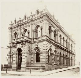 | Keywords: SLNSW 479539 36 City Bank new SH 185.jpg en 36 City Bank new SH 185 1872 http //acms sl nsw gov au/item/itemDetailPaged aspx itemID 479539 item <br/>http //acms sl nsw gov au/item/itemDetailPaged aspx itemID 442753 album Pickering Charles Percy New South Wales Government Printing Office This image may be used freely without requesting permission The State Library of New South Wales http //www acmssearch sl nsw gov au/search/itemPopLarger cgi itemID 479539 requests acknowledgement that the image is from the collections of the State Library of NSW Albums 1 album containing 1 sepia 166 albumen photoprints ; 46 5 x 56 8 x 7 8 cm Bequeathed by D S Mitchell 1907 ; Transfer from Mitchell Library Printed Books X981 1/5 in 1985 Out of copyright - Created before 1955 Titles of photographs are printed on album page below image ; Printed on title page Photographs / of / Public and Other Buildings c / Taken by Authority of / The Government of New South Wales / At the request of / The Secretary of State for the Colonies / The negatives were taken by Mr Charles Pickering under the direction of James Barnet Esq Colonial Architect / New South Wales Thomas Richards Government Printer - 1872 A printed contents list follows the title page along with text on the port of Sydney ; Each album page has a protective flyleaf and there is a red-brown border drawn around each photograph ; On most album pages at the lower right of image appears a handwritten SH and a number in pencil This referes to the Government Printing Office file number with SH denoting John Sharkey who possessed a large number of Charles Pickering's negatives -- Reference Alan Clifford Government Printing Office 1985 ; Nos 131-140 were taken from Government House Tower; D S Mitchell signature on title page New South Wales Government Printing Office Clio ship ; Galatea Ship David Scott Mitchell Collection botanical gardens; bridges; cathedrals; churches; courthouses; harbours; islands; mortuaries; observatories; offices; official buildings; post offices; prisons; schools colleges; ships; statues; streetscapes Abattoirs Glebe Island N S W ; Australian Museum Sydney N S W ; Bank of Australasia Sydney N S W ; Darlinghurst Court House Darlinghurst N S W ; Darlinghurst Gaol N S W ; Exhibition Building Prince Alfred Park N S W ; Glebe Island Bridge Sydney N S W ; Government House Sydney N S W ; Lassetter Co 421 George Street Sydney N S W ; Mort's Wool Stores Circular Quay Sydney N S W ; Old Treasury Building Sydney N S W ; Royal Botanic Gardens Sydney N S W ; Stock Exchange Bridge Gresham Streets Sydney N S W ; Victoria Club Sydney N S W Album ID 823409 SLNSW-image 479539 PD-Australia PD-1996 Australia Images from the State Library of NSW album 442753 SLNSW media uploaded by User 99of9 Bank buildings in Sydney 1872 in Sydney Photographs by Charles Percy Pickering |
