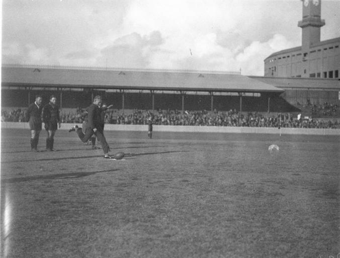 | Keywords: SLNSW 7045 VIP Bennie Wearing in a suit kicks off to start game.jpg en VIP Bennie Wearing in a suit kicks off to start game s 1930 http //www acmssearch sl nsw gov au/search/itemDetailPaged cgi itemID 7045 item <br/>http //www acmssearch sl nsw gov au/search/itemDetailPaged cgi itemID 37473 album <br/>http //www acmssearch sl nsw gov au/search/itemDetailPaged cgi itemID 395018 collection Creator Sam Hood This image may be used freely without requesting permission The State Library of New South Wales http //www acmssearch sl nsw gov au/search/itemPopLarger cgi itemID 7045 requests acknowledgement that the image is from the collections of the State Library of NSW User 99of9/SLNSW_extra_metadata_template 7045 VIP Bennie Wearing in a suit kicks off to start game Home and Away - 4409 1930s Photographs 32812 images copied from glass and cellulose nitrate photonegatives The Library first purchased a large collection of negatives from Gladys Hood in 1972 This collection which included nitrate negatives which have subsequently been copied at DG 0N4 NCY 28-61 was transferred to a videodisc in 1991 and each image indexed individually Ted Hood assisted with the indexing; images were also identified using surviving studio registers The videodisc known as the Home Away disc or simply the Hood collection was digitised in 1996 and mounted on the Internet with upgraded index records via the online catalogue in December 1998 Purchased from Gladys Hood 1972 Copyright restrictions may apply - Photographs in this collection created before 1955 are all out of copyright Photographs created after 1955 are in copyright for the life of creator plus 70 years ; Please acknowledge - Mitchell Library State Library of New South Wales and Courtesy copyright holder 395018 Sam Hood photographic collection 1916-ca 1955 Approximately 44 800 negatives ; 7 309 photographic prints ; 3 boxes of textual material ; 6 film reels The Library first purchased a large collection of negatives from Gladys Hood in 1972 This collection which included nitrate negatives which have subsequently been copied at DG 0N4 NCY 28-61 was transferred to a videodisc in 1991 and each image indexed individually Ted Hood assisted with the indexing; images were also identified using surviving studio registers The videodisc known as the Home Away disc or simply the Hood collection was digitised in 1996 and mounted on the Internet with upgraded index records via the online catalogue in December 1998 ; Another collection from Sam Hood's studio was purchased in 1993 from Gladys Hood's descendants This comprised 7300 photoprints PXE 789 and ca 12000 negatives ON 204 Digitisation of important photographs in PXE 789 began Mar 2002 but ON 204 has not been digitised and must be viewed at the Library Samuel J Hood's 1872-1953 claimed to have been born 1870 but the South Australian Birth Index gives date as 20 August 1872 His career as a photographer began in the 1880s ; He ran a successful business in ships portraits these negatives are now held by the Australian National Maritime Museum Sydney and portraits of people in the late nineteenth - early twentieth century The State Library has little representation of this period In 1918 he acquired the Dalny Studio at 124 Pitt Street and began to expand his business into press photography providing photographs for the Sydney Mail the Australasian the Daily Guardian the Daily Telegraph Pictorial the Labor Daily the Sun the Daily News and the Sydney Morning Herald Press photography increasingly came to dominate his business and in 1934 he joined the Labor Daily for a short time as a full-time photographer engaging other staff to look after his studio ; By the mid-1930s most newspapers employed their own photographers and Hood's commissions from the papers began to decline Hood sought other kinds of commissions and won a number of long term advertising and commercial contracts He contributed a number of photographs of Sydney buildings and streets to Building Construction and Australasian Engineer during the late 1930s and early 1940s Hood also had extensive contacts in the entertainment industry who called upon him to document celebrity events and stars as well as theatre advertising Throughout his career he worked at the stock-in-trade for commercial photographers portraits weddings and even funerals ; A number of photographers worked for Dalny Studio some of these include Ernie Bowen Gus Daley Jack Lazern Lethington Maitland as well as Sam's own children Gladys and Ted ; For detailed biographical information about photographer Sam Hood see Sydney exposures through the eyes of Sam Hood his Studio 1925-1950 / Alan Davies Sydney State Library of New South Wales 1991 Out of copyright - Created before 1955 Photographs ; Please acknowledge - Mitchell Library State Library of New South Wales advertising photography; commercial photography; photojournalism 395018 Original item no DG ON4/4409 yes no PD-Australia PD-1996 Australia Images from the State Library of NSW album 37473 SLNSW media uploaded by User 99of9 Photographs by Sam Hood |