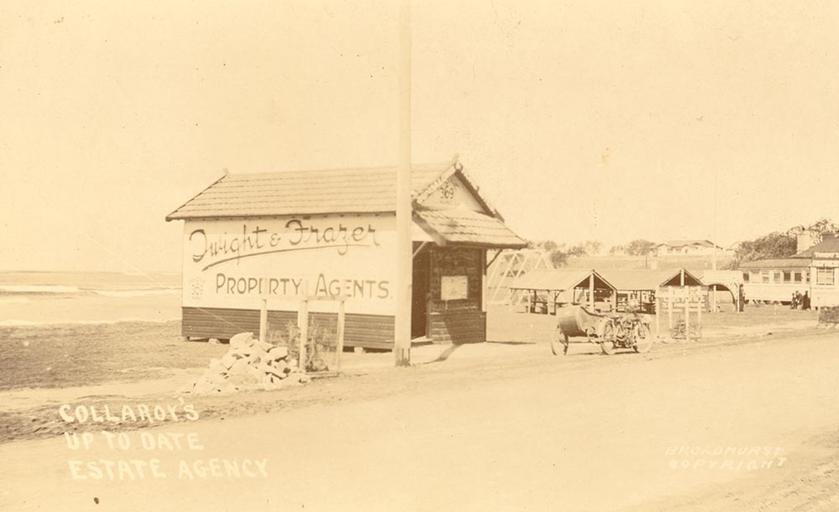 Keywords: SLNSW 796226 Collaroys Up to Date Estate Agency Dwight amp Frazer Property Agents.jpg Photographs 1073 postcards silver gelatin photoprints b w and hand col ; 8 8 x 14 cm -14 x 8 8 cm ; Ephemera 1 pamphlet William Henry Broadhurst was born at Maitland on 13th August 1855; he died aged 72 on 29 July 1927 He moved to Ashfield Sydney and began employment as a surveyor's assistant working mainly on the south coast of NSW He turned his interest in photography into a business and from around 1900 began to publish postcards Many of the photographs were hand coloured for sale by his daughters To secure his photographs he travelled by train and then walked wherever he wanted to go -- Reference source Illawarra Historical Society Bulletin September 1970 pp 2-3 PXA 635/1071 Presented 1970; Pic Acc 2048 For access to this material please contact the Head of Pictures Section - M A B often appears on the front of Broadhurst postcards The name M Broadhurst also appears on the back of some postcards eg PXA 635/179 The identity and significance of this anomaly is unknown This collection has been arranged by geographical location You may navigate from this collection record to these individual records 796226 Collaroy's Up to Date Estate Agency Dwight Frazer Property Agents Postcards of New South Wales Collaroy New South Wales |