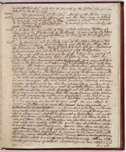 | Keywords: SLNSW 811246 p25.jpg  Aggregated Collection Textual Records Graphic Materials The First Fleet consisting of 11 vessels was the largest single contingent of ships to sail into the Pacific Ocean Its purpose was to found a convict settlement on the east coast of Australia at Botany Bay ; The First Fleet sailed from England on 13 May 1787 carrying more than 1 500 people and arrived at Botany Bay eight months later on 18 January 1788 Governor Arthur Phillip rejected Botany Bay choosing instead Port Jackson to the north as the sight for the new colony; they arrived on 26 January 1788 The Fleet consisted of two naval escorts HMS Supply and the flagship HMS Sirius carrying the Governor; six convict transports the Alexander Charlotte Friendship Lady Penrhyn Prince of Wales and the Scarborough; and three storeships the Borrowdale Fishburn and Golden Grove This selection comprises ten of the eleven known First Fleet journals including two versions of Philip Gidley King's journal; and correspondence and artworks of First Fleeters First Fleet 1787-1788 ; New South Wales -- History -- 1788-1851 811246 p 25 Journal of George Bouchier Worgan |