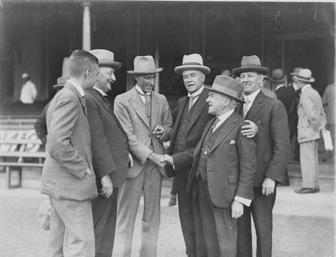 | Keywords: SLNSW 9346 Six unidentified men greet each other They are probably cricket officials Ted Hood 2041988.jpg en Six unidentified men greet each other They are probably cricket officials Ted Hood 20/4/1988 There is a '1940' sign at back http //www acmssearch sl nsw gov au/search/itemDetailPaged cgi itemID 9346 item <br/>http //www acmssearch sl nsw gov au/search/itemDetailPaged cgi itemID 37473 album <br/>http //www acmssearch sl nsw gov au/search/itemDetailPaged cgi itemID 395018 collection Creator Sam Hood This image may be used freely without requesting permission The State Library of New South Wales http //www acmssearch sl nsw gov au/search/itemPopLarger cgi itemID 9346 requests acknowledgement that the image is from the collections of the State Library of NSW User 99of9/SLNSW_extra_metadata_template 9346 Six unidentified men greet each other They are probably cricket officials Ted Hood 20/4/1988 Home and Away - 5410 There is a '1940' sign at back Photographs 32812 images copied from glass and cellulose nitrate photonegatives The Library first purchased a large collection of negatives from Gladys Hood in 1972 This collection which included nitrate negatives which have subsequently been copied at DG 0N4 NCY 28-61 was transferred to a videodisc in 1991 and each image indexed individually Ted Hood assisted with the indexing; images were also identified using surviving studio registers The videodisc known as the Home Away disc or simply the Hood collection was digitised in 1996 and mounted on the Internet with upgraded index records via the online catalogue in December 1998 Purchased from Gladys Hood 1972 Copyright restrictions may apply - Photographs in this collection created before 1955 are all out of copyright Photographs created after 1955 are in copyright for the life of creator plus 70 years ; Please acknowledge - Mitchell Library State Library of New South Wales and Courtesy copyright holder 395018 Sam Hood photographic collection 1916-ca 1955 Approximately 44 800 negatives ; 7 309 photographic prints ; 3 boxes of textual material ; 6 film reels The Library first purchased a large collection of negatives from Gladys Hood in 1972 This collection which included nitrate negatives which have subsequently been copied at DG 0N4 NCY 28-61 was transferred to a videodisc in 1991 and each image indexed individually Ted Hood assisted with the indexing; images were also identified using surviving studio registers The videodisc known as the Home Away disc or simply the Hood collection was digitised in 1996 and mounted on the Internet with upgraded index records via the online catalogue in December 1998 ; Another collection from Sam Hood's studio was purchased in 1993 from Gladys Hood's descendants This comprised 7300 photoprints PXE 789 and ca 12000 negatives ON 204 Digitisation of important photographs in PXE 789 began Mar 2002 but ON 204 has not been digitised and must be viewed at the Library Samuel J Hood's 1872-1953 claimed to have been born 1870 but the South Australian Birth Index gives date as 20 August 1872 His career as a photographer began in the 1880s ; He ran a successful business in ships portraits these negatives are now held by the Australian National Maritime Museum Sydney and portraits of people in the late nineteenth - early twentieth century The State Library has little representation of this period In 1918 he acquired the Dalny Studio at 124 Pitt Street and began to expand his business into press photography providing photographs for the Sydney Mail the Australasian the Daily Guardian the Daily Telegraph Pictorial the Labor Daily the Sun the Daily News and the Sydney Morning Herald Press photography increasingly came to dominate his business and in 1934 he joined the Labor Daily for a short time as a full-time photographer engaging other staff to look after his studio ; By the mid-1930s most newspapers employed their own photographers and Hood's commissions from the papers began to decline Hood sought other kinds of commissions and won a number of long term advertising and commercial contracts He contributed a number of photographs of Sydney buildings and streets to Building Construction and Australasian Engineer during the late 1930s and early 1940s Hood also had extensive contacts in the entertainment industry who called upon him to document celebrity events and stars as well as theatre advertising Throughout his career he worked at the stock-in-trade for commercial photographers portraits weddings and even funerals ; A number of photographers worked for Dalny Studio some of these include Ernie Bowen Gus Daley Jack Lazern Lethington Maitland as well as Sam's own children Gladys and Ted ; For detailed biographical information about photographer Sam Hood see Sydney exposures through the eyes of Sam Hood his Studio 1925-1950 / Alan Davies Sydney State Library of New South Wales 1991 Out of copyright - Created before 1955 Photographs ; Please acknowledge - Mitchell Library State Library of New South Wales advertising photography; commercial photography; photojournalism 395018 Original item no DG ON4/5410 yes no PD-Australia PD-1996 Australia Images from the State Library of NSW album 37473 SLNSW media uploaded by User 99of9 Photographs by Sam Hood |
