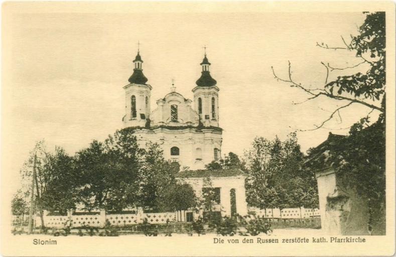 Keywords: Słonim, Zamoście. Слонім, Замосьце (1916) .jpg Слонім Słonim Замосьце Zamoście Касьцёл Сьвятога Анд эя З калекцыі Ўладзіме а Ліхадзедава author 1916 PD-old-70 History of Słonim Churches in Slonim