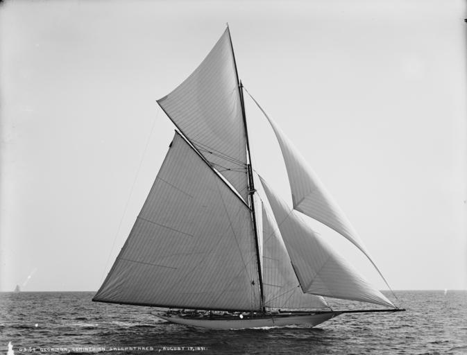Keywords: Sloop Gloriana-9.jpg Nathanael Greene Herreshoff 1891 won the first six races in the first season of the all new 46-footer class before she was removed from racing She announced Herreshoff's return to sailboat racing after the loss of his steam license in 1888 and the death of his friend Edward Burgess in 1891 She is pictured racing in the Corinthian sweepstakes LOC-image det 4a04563 1891-08-17 PD-Detroit Gloriana ship 1891 Black and white photographs Boats under sail |