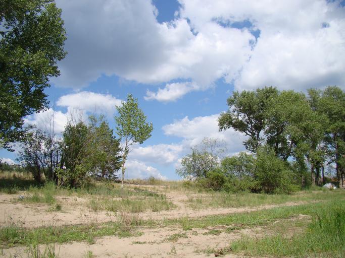 Keywords: slope sandy trees the bushes upgrade tent sky clouds