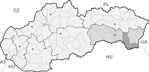 Keywords: Slovakia kosice trebisov.png Map of Slovakia Trebisov district and Kosice region highlighted Own 2007-02-03 Martin Proehl Administrative units of Slovakia Trebišov District