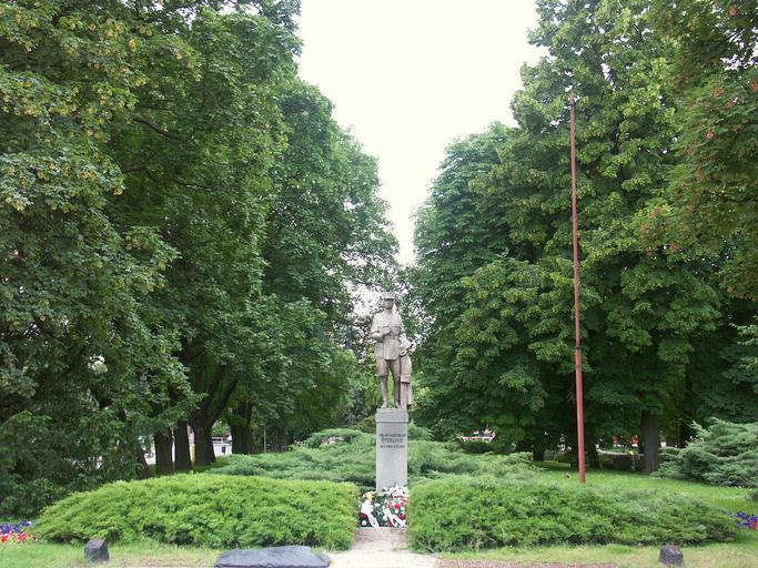 Keywords: Slovakia Trnava pomnik Stefanika.JPG 2006-06-09 own assumed Rado Bahna~commonswiki Statues in Trnava Statues of Milan Rastislav Štefánik Ján Koniarek