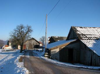 Keywords: slovenia farm barn house road winter snow ice rural rustic sky clouds landscape fields nature outside country countryside scenic