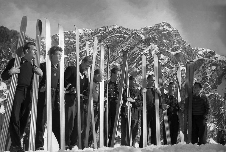 Keywords: Slovenska skakalna reprezentanca v Planici 1947.jpg Slovenska skakalna reprezentanca v Planici Od leve proti desni Janko Mežik Rudi Finžgar neznani Lojze Razinger - Buča Karel Klančnik Janez Polda Franc Pribovšek - Šiki Slavko Šuštaršič in Ivo Javornik 1947-03 http //www rtvslo si/moja-generacija/prosti-cas/zgodovinski-utrip-izpod-ponc/329695 creator Marjan Pfeifer PD-Slovenia 1947 in Slovenia Black and white photographs of Planica Ski jumpers from Slovenia Group photographs of sportspeople from Slovenia Historical images of the Bloudek Giant Rudi Finžgar Karel Klančnik Janez Polda Franc Pribovšek Photographs by Marjan Pfeifer Items kept by the Museum of Contemporary History of Slovenia |