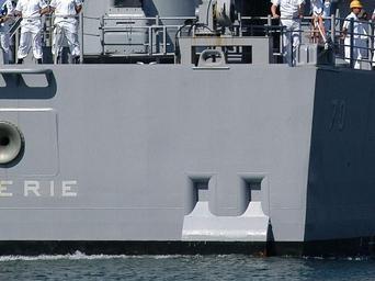 Keywords: SLQ-25 Nixie Ports CG-70 Lake Erie 2004-12-18.jpg en 041218-N-8157C-039 Pearl Harbor Hawaii Dec 18 2004 - The guided-missile cruiser USS Lake Erie CG 70 and her crew of more than 400 Sailors Commanded by Capt Joseph A Horn Jr returns to Pearl Harbor after a four-month deployment to the Western Pacific in support of the Global War on Terrorism U S Navy photo by Photographer's Mate 2nd Class Dennis C Cantrell RELEASED ru Лацпо ты то педной ловушки AN/SLQ-25 Nixie сп ава внизу на т анце акетного к ейсе а CG-70 Lake_Erie Cropped http //www navy mil/view_image asp id 19707 U S Navy photo by Photographer's Mate 2nd Class Dennis C Cantrell 2004-12-18 PD-USGov USS Lake Erie CG-70 AN/SLQ-25 Nixie |