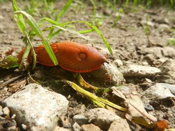 Keywords: slug nature path orange peel snail animal mollusk no shell