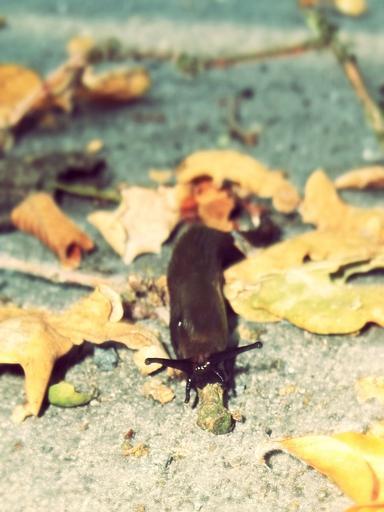 Keywords: slug snail autumn crawl brown slowly mollusk leaves nature animal